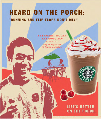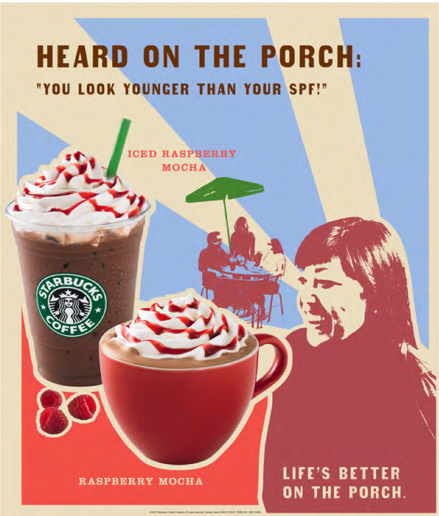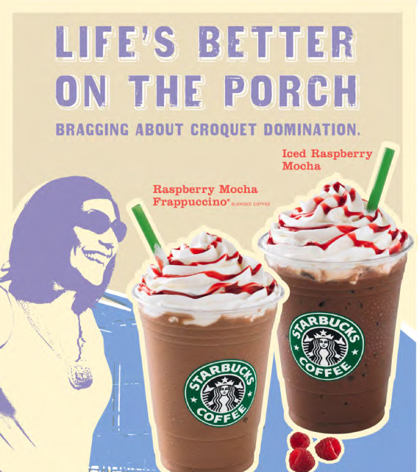 Retail posters promoting summer beverages in Starbucks North America stores.