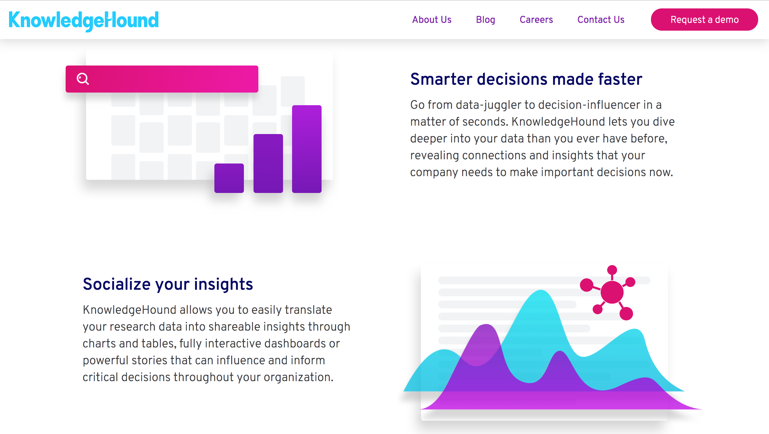 Knowledgehound, a young research data analytics company based in Chicago, was totally overhauling their brand and their web presence. They hired me to craft their key messaging, create a new brand voice and write the content for their new website.
